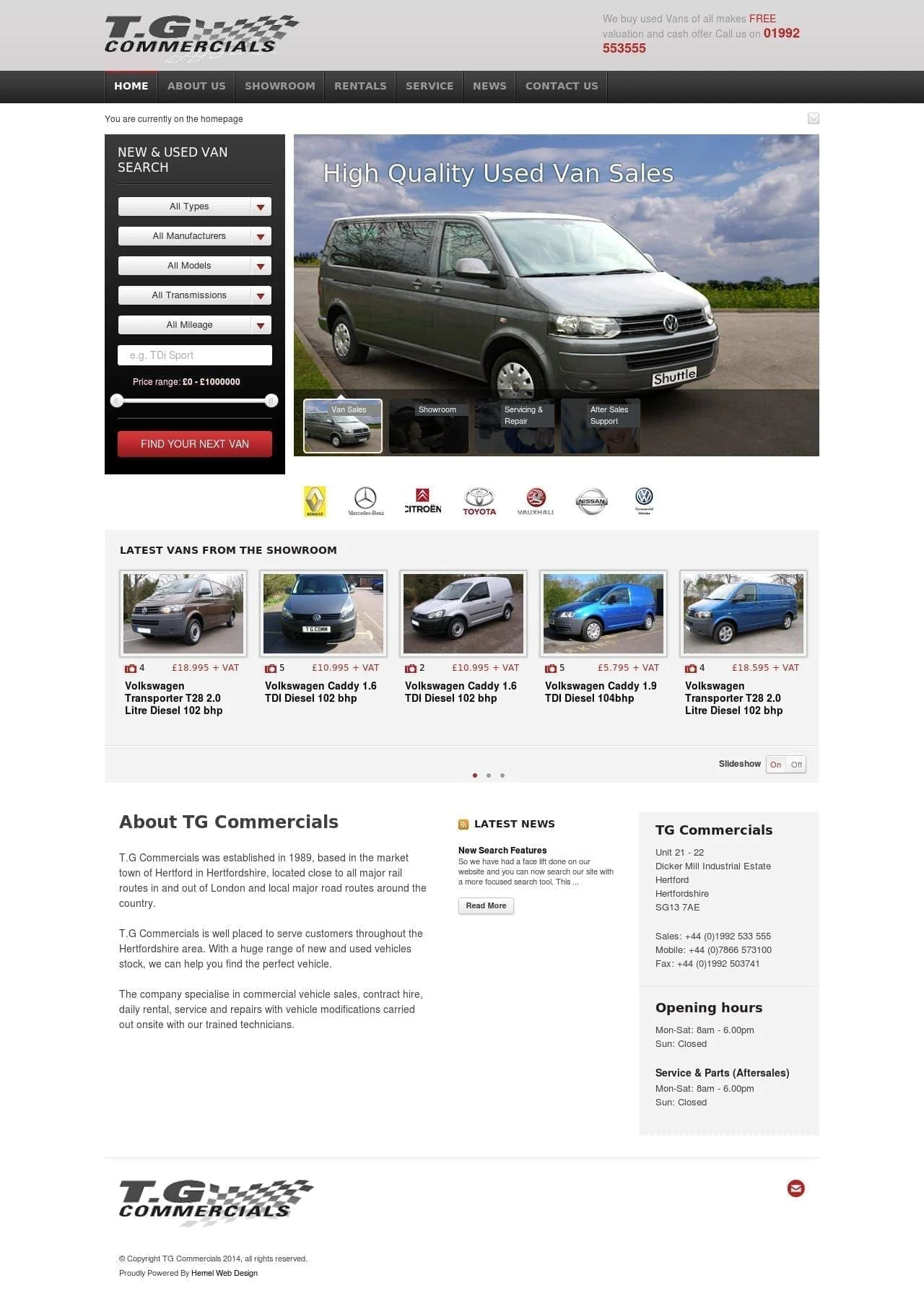 TG Commercials Goes Live Commercial Van sales and Rentals in Hertfordshire. The site has had a complete face lift with a whole raft of new functionality added.